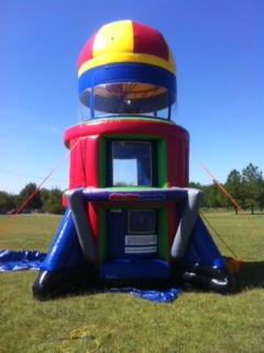 The Airborne Adventure is a one-of-a-kind inflatable attraction that allows your guests and attendees to experience life in the clouds! The game has an inner capsule that can hold one adult or two children, who are then harnessed in a parachute. A flick of the switch sends the adventurous player high into the air, almost 20 feet above the ground, for a bird's eye view of the entire event or party! Once the blower is turned off, the participant is gently lowered back to Earth for a safe and soft landing. This is a slow ride that is recommended for small children.