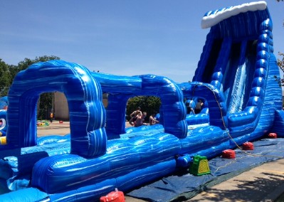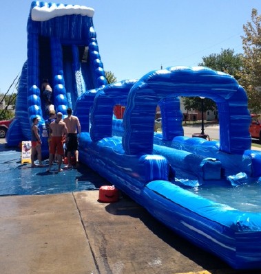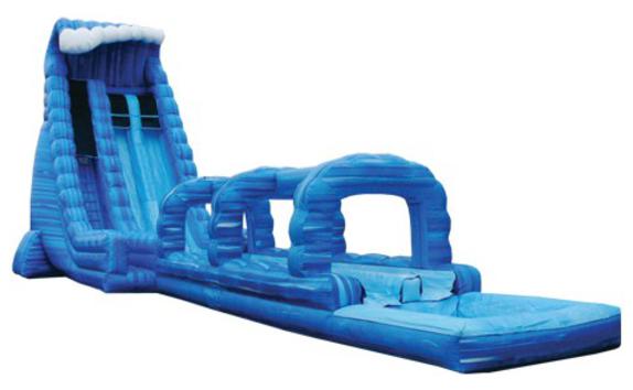 Our 27ft Blue Crush 2 Lane Water Slide features a radical sliding angle that's sure to get the adrenaline pumping as riders scream down the 27' Blue Crush Slide. At the bottom, riders continue down 26' of additional sliding fun before landing in the pool. This water slide will blow your mind! It's perfect for schools, churches, summer camps and more. Fun for all ages!