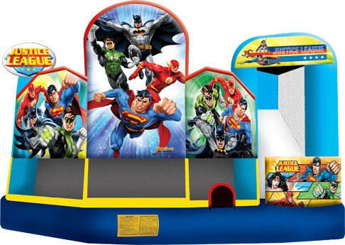 The Justice League encompasses strength, power and courage in this energetic 5-in-1 combo inflatable jumper. With five activities from which to choose, kids can practice their superhero skills alongside Batman, Superman, Wonder Woman, Flash and Green Lantern. This impressive Justice League 5-in-1 combo inflatable jumper offers colorful artwork at every turn, and is sure to draw quite a crowd.