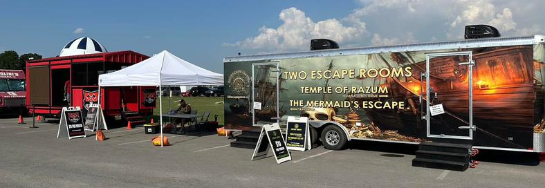 A mobile escape room trailer is an escape room put inside a trailer, simple as that! Our escape trailers are heated and cooled so no matter what the weather is outside, it is comfortable inside! You can fit around 5 participants at a time inside the escape room. Our escape trailers are professionally built escape rooms using some very unique puzzles and game play. We offer serveral different mobile escape room trailers with different themes in each one. We have a mobile escape room that is sure to fit your festival or event!