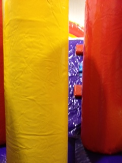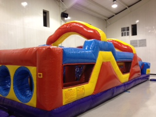 The Inflatable 34ft Obstacle Course is an oversized inflatable play structure which has a bright and colorful theme of yellow, red and blue, perfect for high-traffic days. The Monster Obstacle Course is set up for friendly competition play, with dual entrances and exits. Challenge your friends thru the tunnels, pop ups, & slide. Great for all ages!