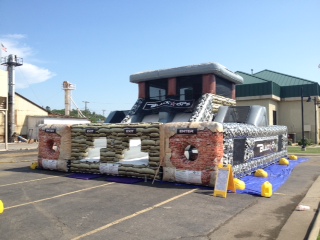 Are you Ready to take on the mission? This two lane obstacle course is a one of a kind experience allowing the participants to have the feeling that they are truly engaging in a war of dexterity. Battle your opponent to victory as you make your way through the bricked wall entrance, down the path of stone pillars, crawl throughs and passageways. The journey doesn’t end here as you reach the rock climb wall leading to the uniquely designed teeter-totter pivoting bridge, then down the slide to the finish line!