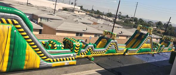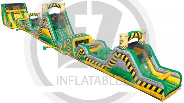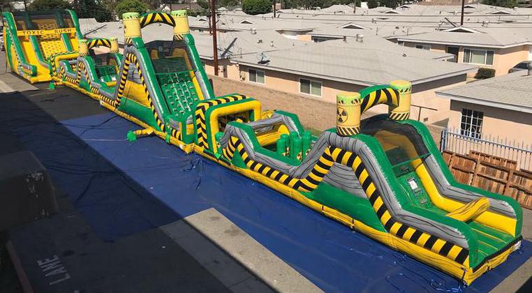 What do you get when you combine our Toxic Run Obstacle Course with the Toxic Rush? You get the MEGA TOXIC Run Obstacle Course! Over 156ft long and 22ft tall, you will not find a bigger obstacle course to rent in the state! Mega Toxic Run is the ultimate challenge where you race your opponent thru tunnels, pop ups, crawl thrus, & finally up the large rock climbing wall and down the huge slides! You will be exhausted as you have FOUR climb and slides in this obstacle course!