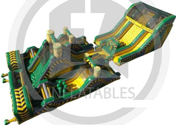 What do you get when you combine our Toxic Challenge Obstacle Course with the Toxic Rush? You get the TOXIC MONSTER Run Obstacle Course! This is the LARGEST down and back obstacle course to rent in the state! Toxic Monster is the ultimate challenge where you race your opponent thru tunnels, pop ups, crawl thrus, & finally up the large rock climbing wall and down the huge slides! Can you conquer the Toxic Monster?