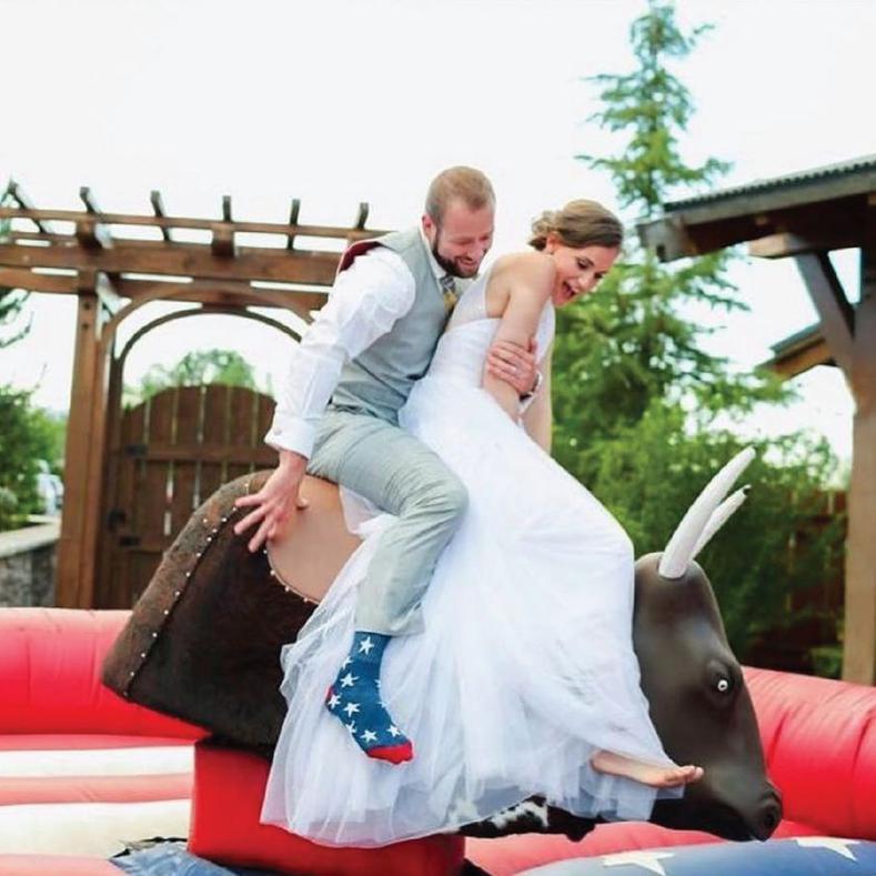 Wow your wedding guests with a mechanical bull to get the party started!